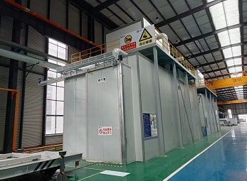 電氣設(shè)備包括電控柜、發(fā)電機、變壓器、電力線路、斷路器、預(yù)裝式變電站及成套設(shè)備等,采用靜電噴粉技術(shù)方案,涉及到的工藝包括:上件—脫脂—水洗—磷化—水洗—無離子水洗—水份烘干—噴粉—烘干—強冷—下線,電氣噴粉線設(shè)備涉及到的設(shè)備包括一體化噴淋前處理機組、烘干設(shè)備、噴粉設(shè)備、輸送設(shè)備、廢氣處理設(shè)備。